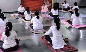 योग प्रशिक्षिका शशि नीलवंत ने उपस्थित सभी प्रतिभागियों को योगासनों, प्राणायाम एवं शांतिपाठ का सत्र करवाया, जिसे सभी ने श्रद्धा और समर्पण के साथ पूरा किया।